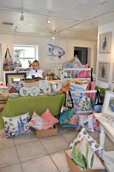 Tucked away in the charming & sunny Florida town of Jensen Beach, is Sally's design studio and home decor shop. This space is where she creates original watercolor artwork that illustrates nature in a traditional manner with a contemporary feel. Take a look into Sally's creative world of rich colors, intricate patterns & trend driven styles.